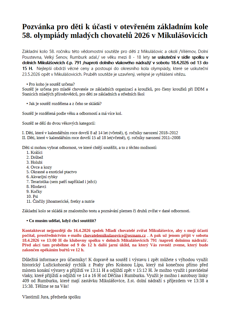 Mladí chovatelé zvířat, p.s. Mikulášovice